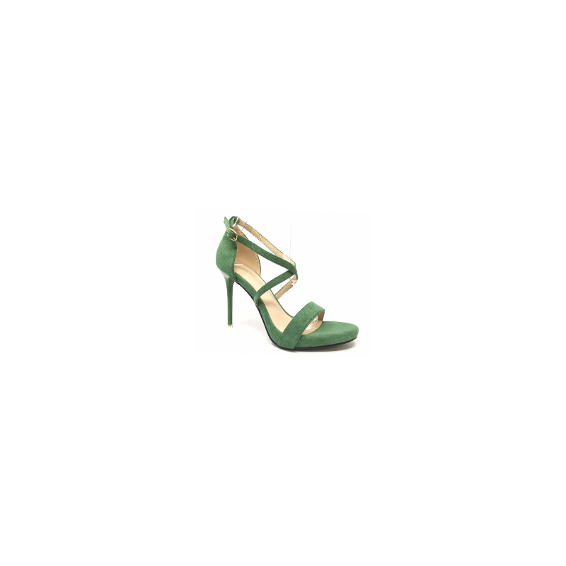 Déjate envolver por el encanto de esta exquisita sandalia en un tono verde vibrante, elevándote con su tacón de aguja que estiliza la figura. Perfecta para noches mágicas donde cada paso es un destello de sofisticación y elegancia, desde la celebración de una boda hasta el brillo de un baile de graduación o una fiesta inolvidable.