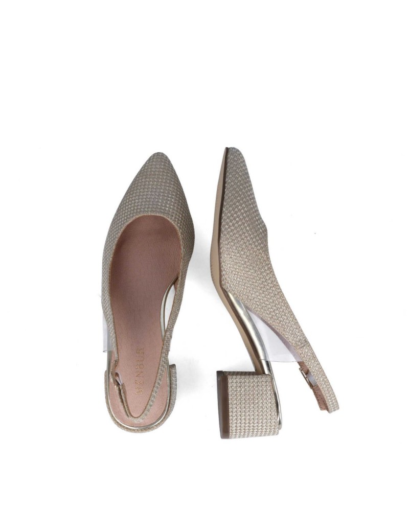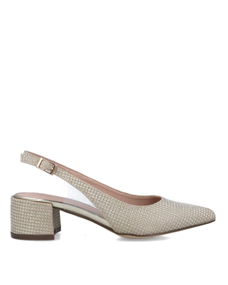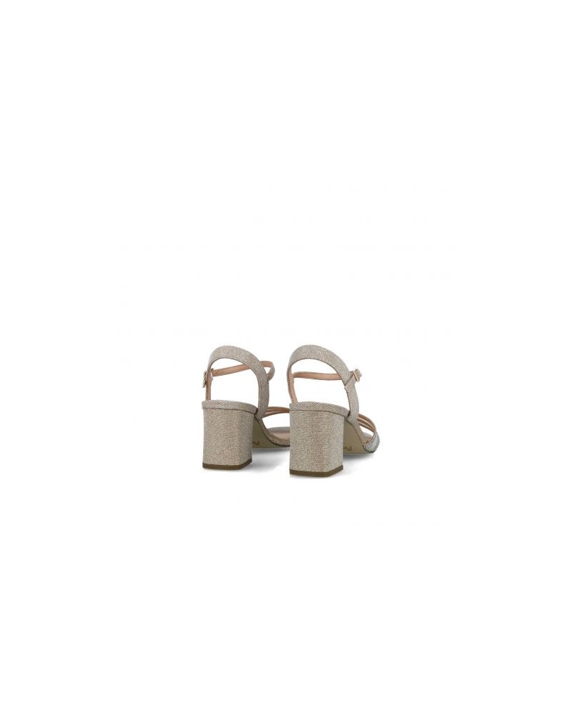 Deslumbrantes sandalias de tacón alto con brillo dorado y diseño de tres delicadas tiras. Perfectas para eventos donde quieras destacar con un toque de sofisticación.