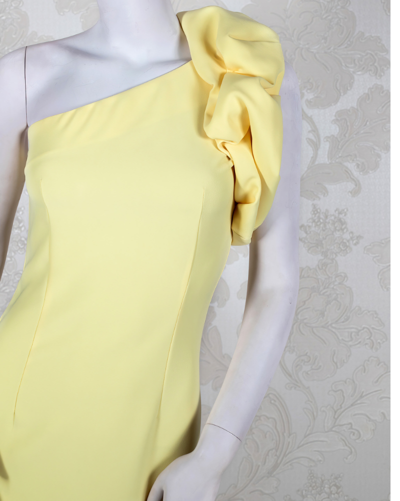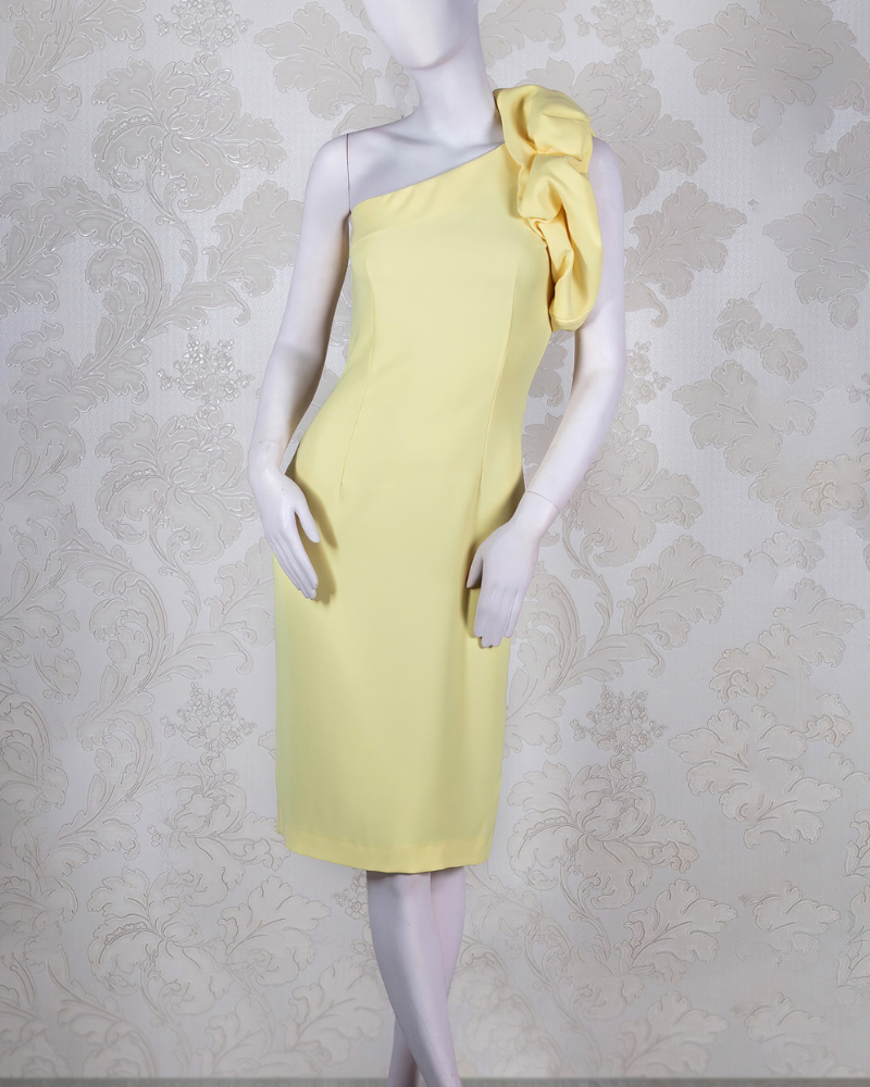 Vestido escote redondo en crep strech con manga ranglán en tul sedoso, que se sujeta con botones forrados. Vestido de línea recta con abertura en espalda. Posibilidad de colorido.